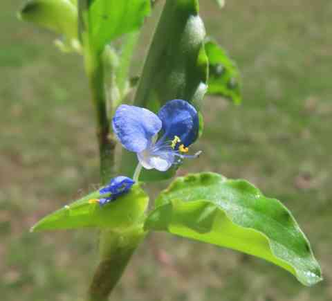 ツユクサは私の好きな道端の草ですが、最近(ここ数年)、よく似たマルバツユクサが台頭しており、気になっています。花はツユクサより小さく、葉の幅が広く名前にあるように丸味があります。道端でツユクサと混在していることも多く、翌年見ると、明らかにマルバツユクサのほうが多くなっているように思います。ツユクサは葉が細く花が大きいのでよく目立ちますが、マルバツユクサは葉が大きく花が目立ちません。びっしりと群生しているのを見かけることも多くなりました。