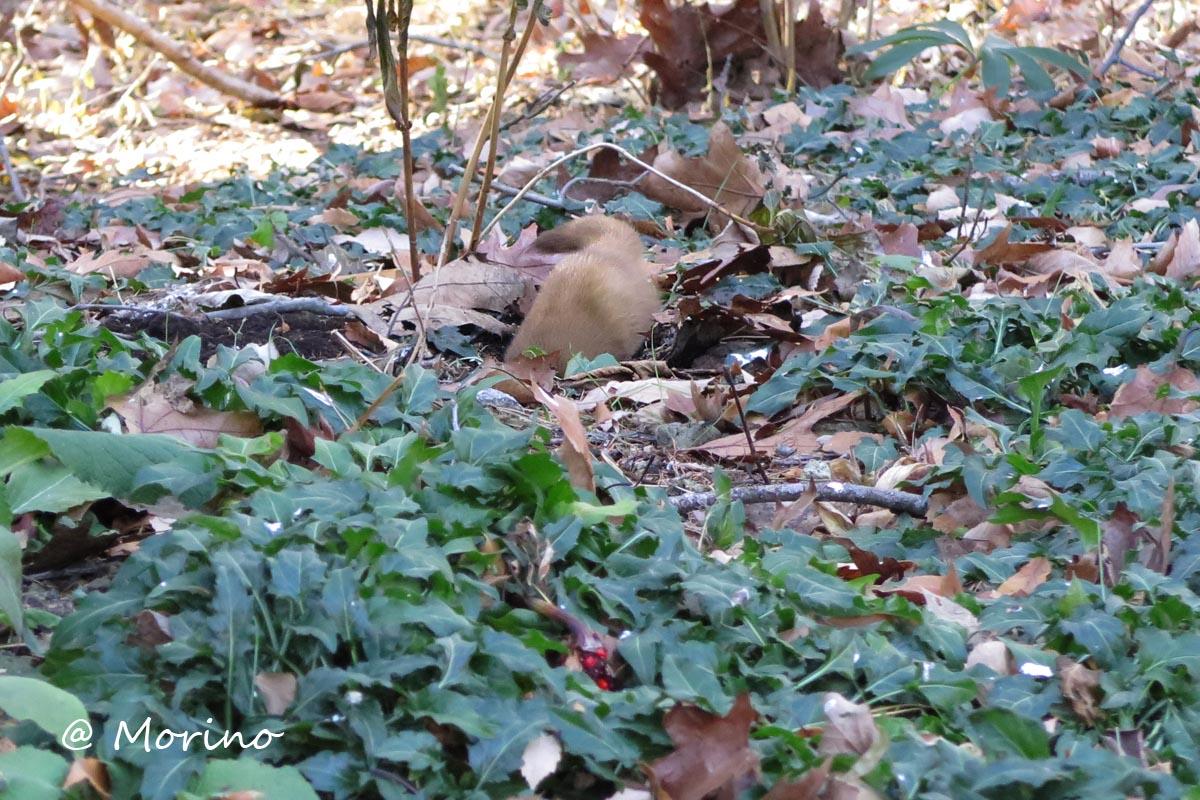 尾を除くと30cmに満たない大きさで落葉の上を一瞬、静かにしていたら又現れ何やら穴を掘っている