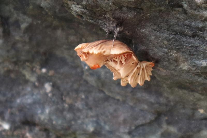 ジャコウアゲハの蛹 おもしろい形をしていますね 今年は幼虫が大発生したそうです。