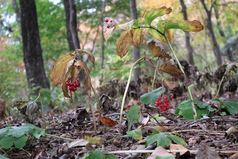 びっしりとついた果実の重みで折れたテンナンショウに秋の深まりを感じます。