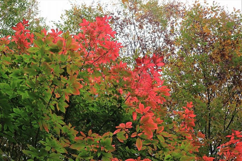 メグスリノキも上のほうが赤くなっているだけでした 太陽と青空があったらば赤い葉がもっと映えるのにな~・・・