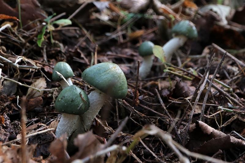 アイタケ ベニタケ科 この色からして毒キノコの感じがしますが 美味しいんだとか・・この緑色のキノコが