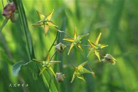 スズサイコ キョウチクトウ科 旧はガガイモ科 絶滅危惧種Ⅱ類 朝日が出ると鈴の様な形に花は閉じてしまい夕方