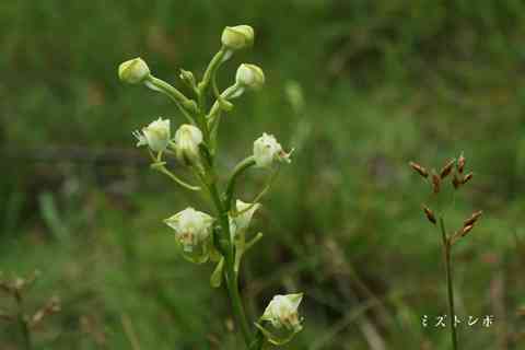 ミズトンボ ラン科 絶滅危惧Ⅱ類 なんとも奇妙な形の花ですね 舌弁が十字形となり 垂れ下がった
