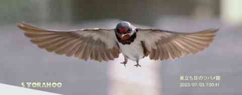 わが家で7月3日の早朝、ツバメ4羽の雛が巣立ちしました。内、1羽の雛を3mの至近でフェンスにパーチする直前を連写ではない一発勝負にて真正面から捉えたシーンです。(とても、巣立ち直後の雛とは思えず猛禽類的な顔の表情に背景のボケ味も一役)