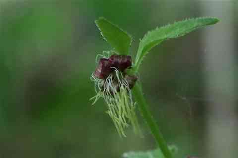 花がついてない時は単なるつまらない草としか見えません 花が咲いて初めて え~と思います 雄しべが垂れ下がり風にそよいで