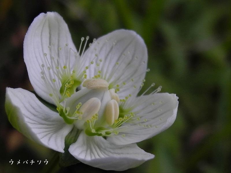 ウメバチソウ マクロレンズで接近してみると仮雄しべのドットが扇のように広がり雄しべは1日に1本ずつ反り返ります
