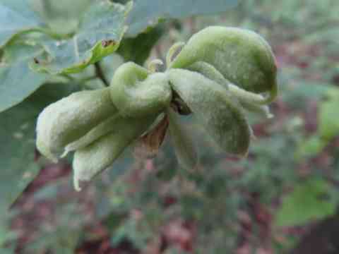 エゴノキでよく見られる虫こぶです。中はアブラムシ(エゴノネコアシアブラムシ)だらけなはずです。