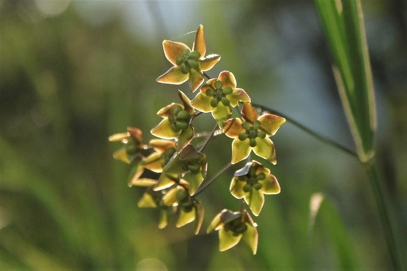 スズサイコ キョウチクトウ科 旧はガガイモ科 絶滅危惧種Ⅱ類 朝日が出ると鈴の様な形に花は閉じてしまい夕方