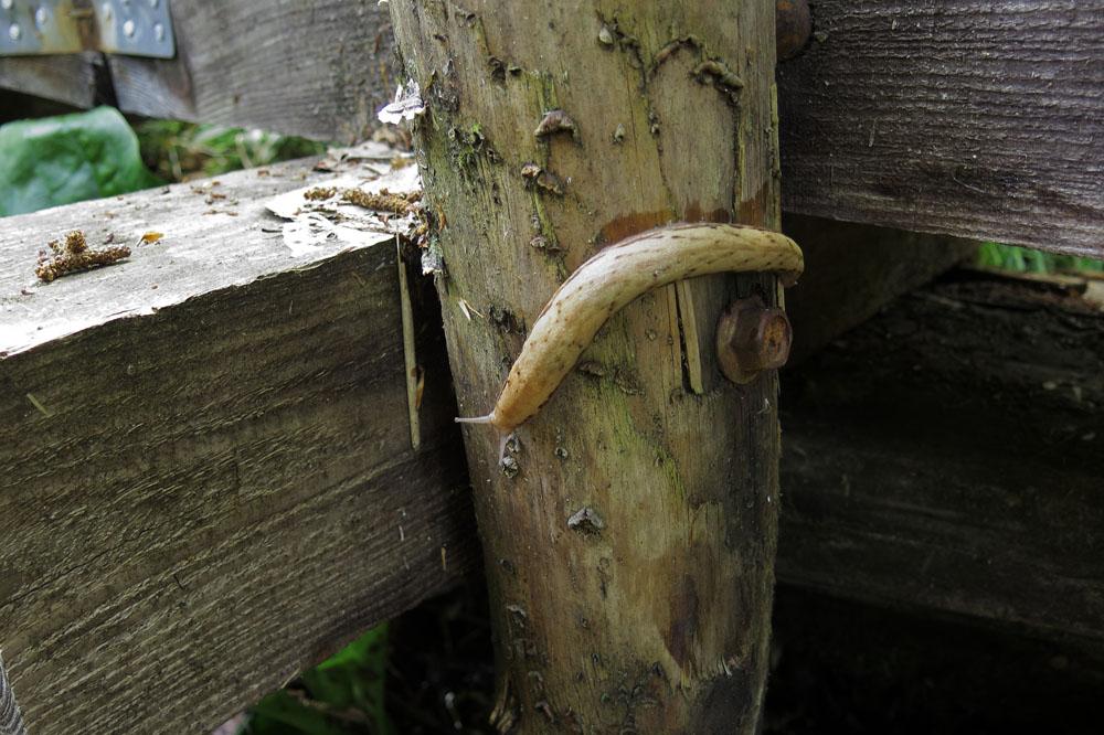 体長14cmくらい、さすがに大きいダイセンヤマナメクジ、木道側面から移動した