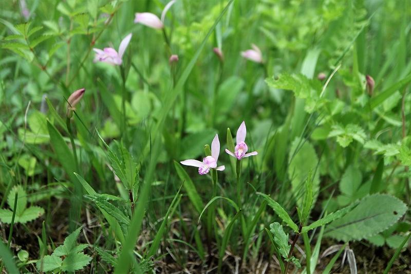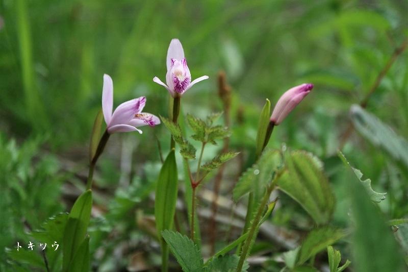 小さなラン科のトキソウ 日本固有種 絶滅危惧Ⅱ類 和名は花色が朱鷺の羽色に似ているのでこの名が この貴重なトキソウを皆で大切に見守ってゆきたいと思います。