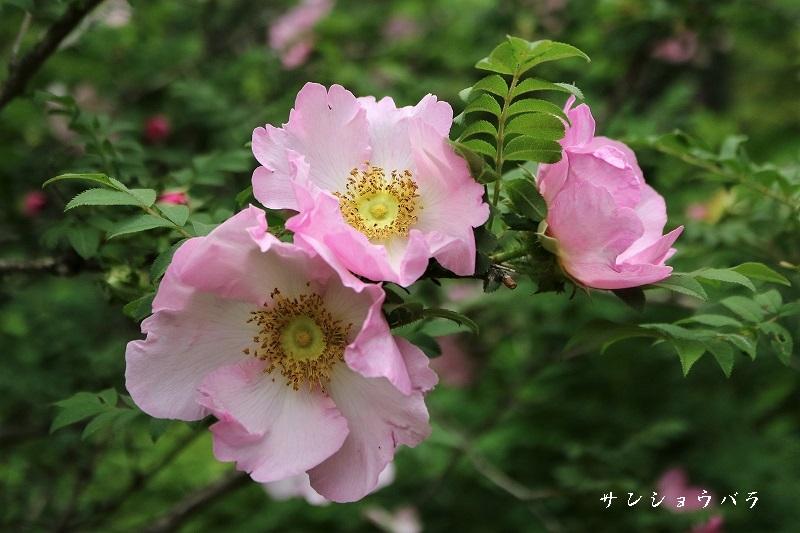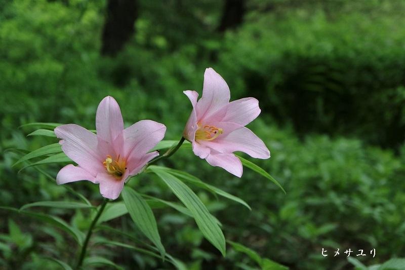 緑の茂みの中にぽつりぽつりと弱々しくヒメサユリが咲いています なんとも不思議な魅力を感じます。