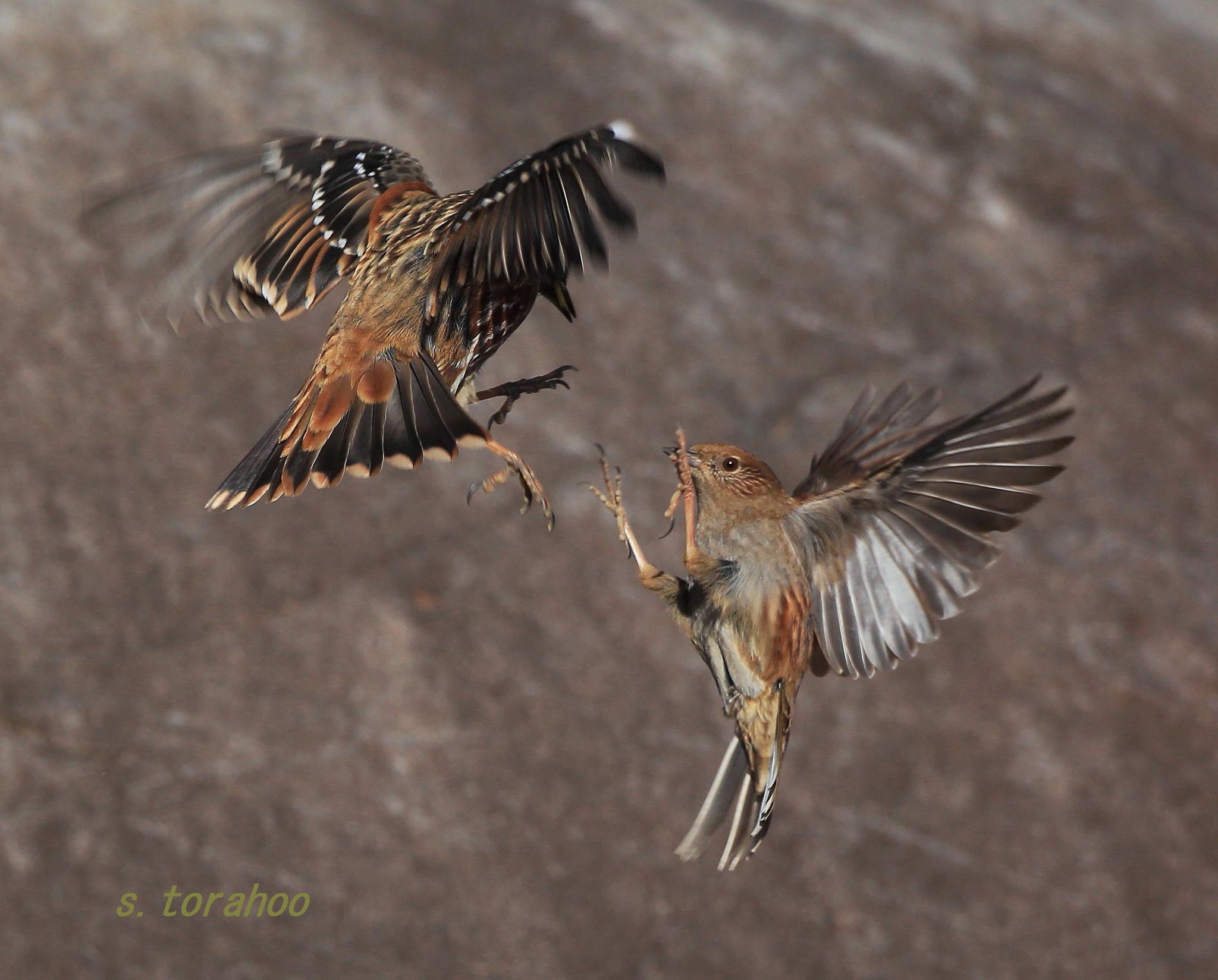継続14年目は定点撮影よりクマタカの♀。繫殖期を間近に控え直近の行動パターンに多少の変化の兆しが見え隠れしてきたようです。画像は急降下飛翔の様子を連写で、森の王者としての見事な風切羽のしなりと翼の縞模様の美しさを顕著に写し撮った3枚です。【群馬県西部】