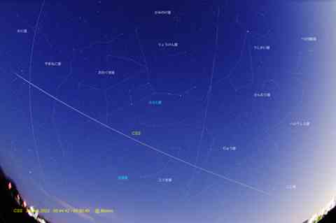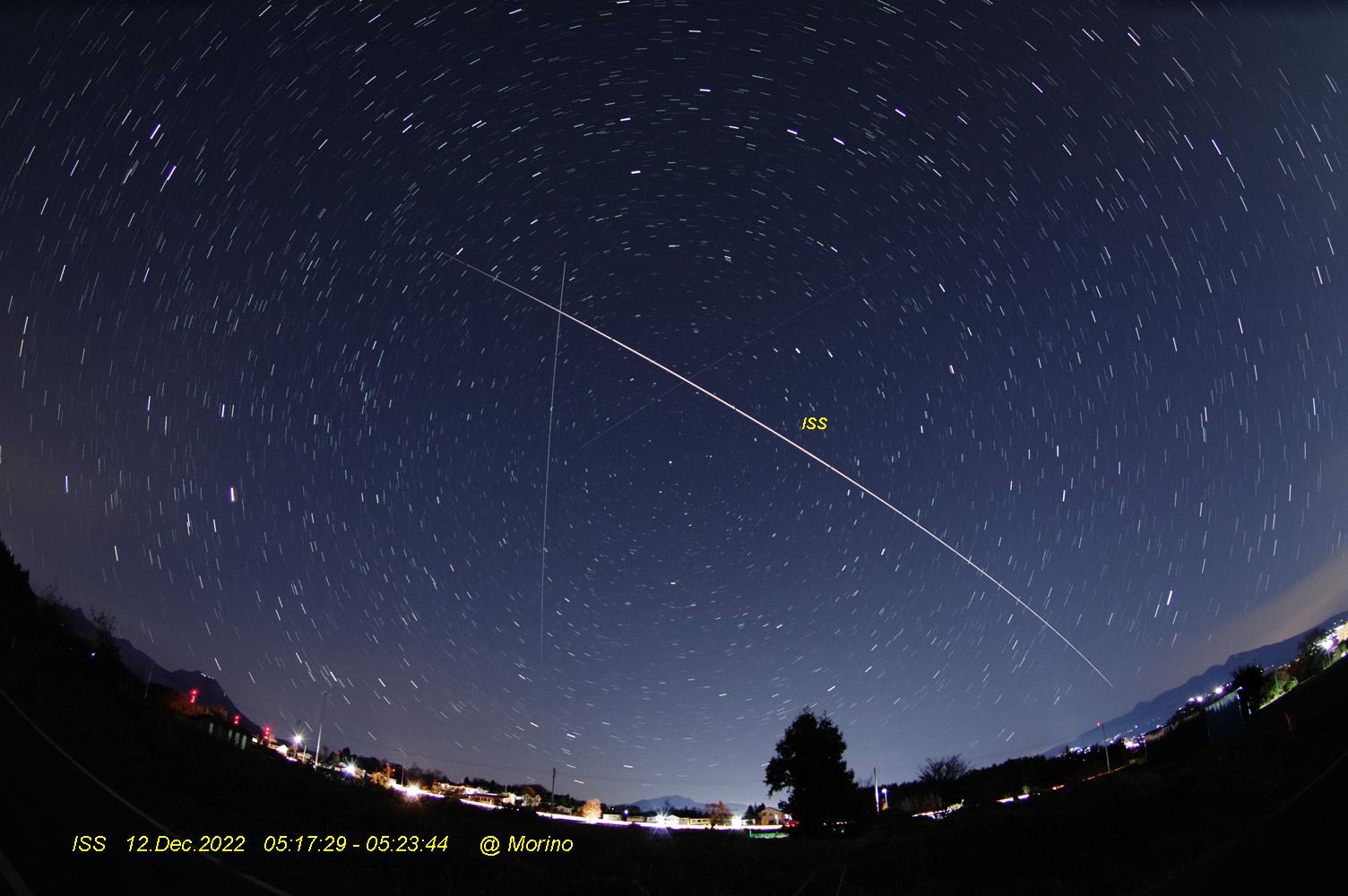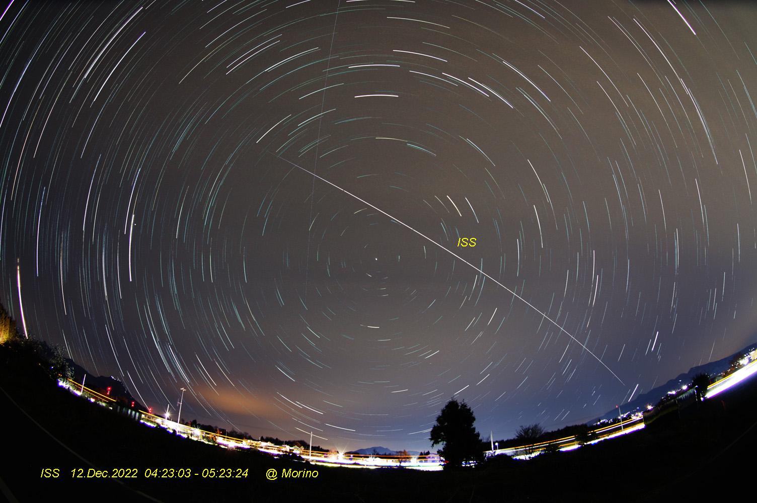 コース、星の周回1時間(15度)記録で最後にISSの光跡を重ねる画像。