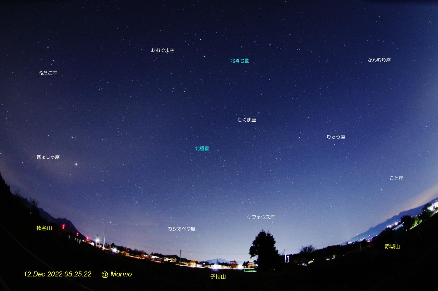 12/21日は北西から現れ、北極星上を通り北東の赤城山で地球の陰に入る