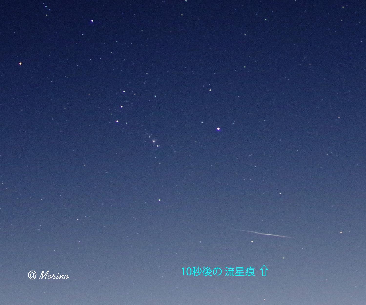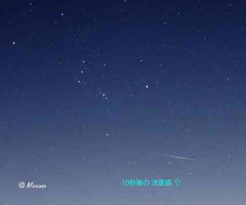 流れたのは、強烈で10秒高速連写の画像に、流星痕が5分間くらい確認出来ました。