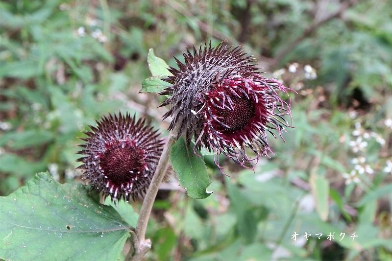 ゴボウの様な大きな葉のオヤマボクチ ちょうど綺麗に開花していました