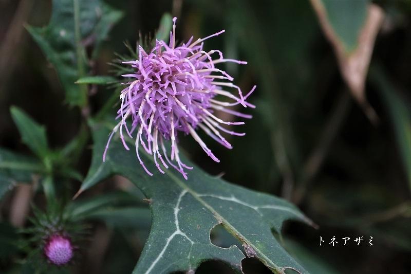クマザサの中に丈の低いトネアザミ?が隠れる様に咲いていました。