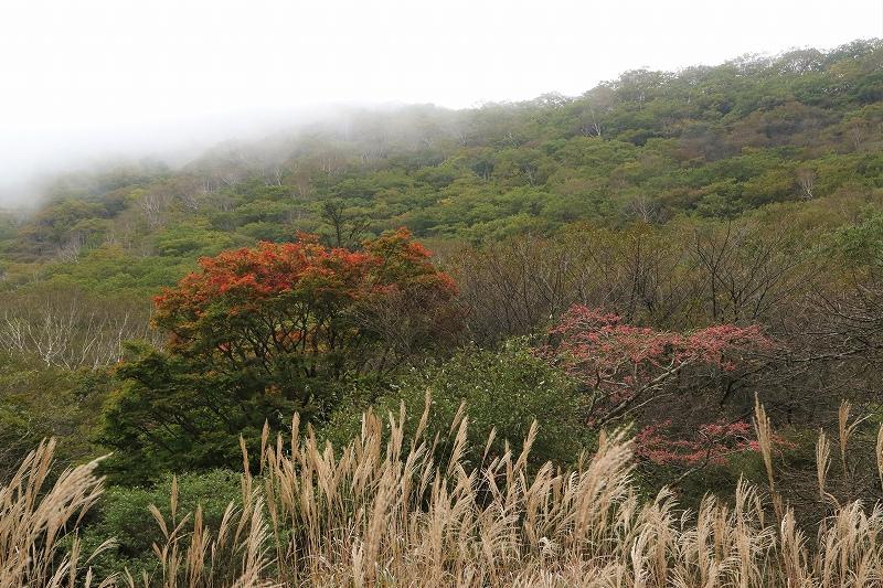 花は少ないですが草が色づき草原は黄金色に輝いています レンゲツツジやカエデが少しずつ