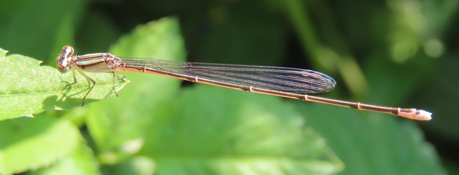 数年前まではほとんど見なかったトンボですが、昨年からフィールドの雑木林(前橋北部)で多数見るようになりました。増えているようです。今日は我が家の畑に来ていたので驚きました。水路はあるものの、田んぼはやや離れています。どのようにやってきたのでしょうか。不思議です。夏型と越冬型があり、この時期に見られるのは越冬型と思われます。名前の通り非常に体が細く、か弱く見えるトンボなのに、この体で越冬できるとはどのような仕組みなのでしょうね。目を離すと消えてしまう忍者のようなトンボです。