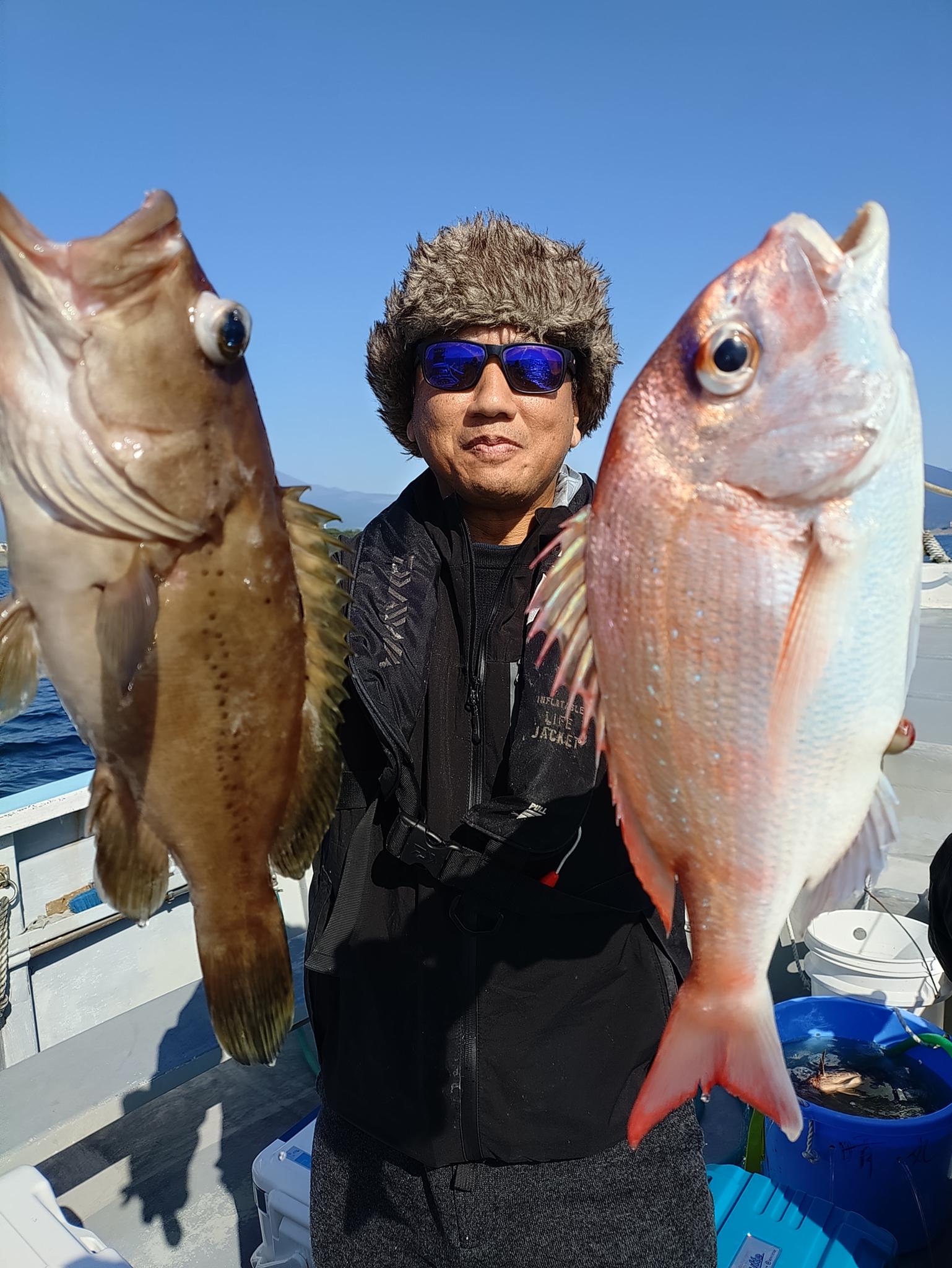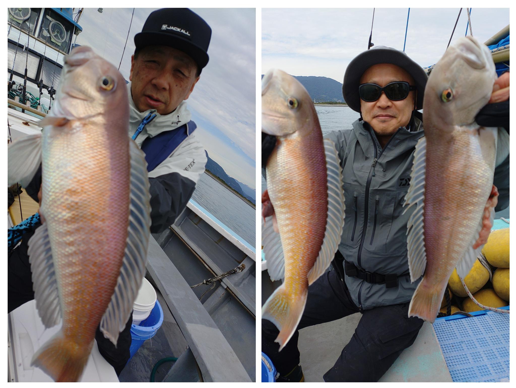 ☆本日もマダイ頭で4枚 全員キャッチしてます。その他 シロ甘鯛・アカ甘鯛・ハタ・ホウボウ・イトヨリ。本命のバラシ有ります。