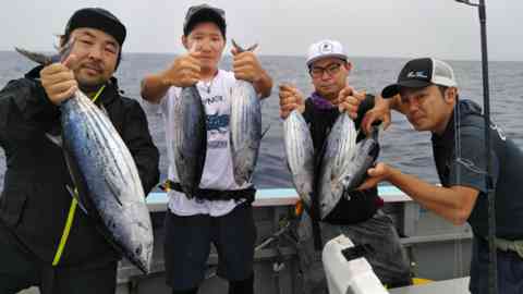 ◎カツオがヒットしてます。頭で5匹。全員ヒットしてます。バラシ多数でした。その他シイラ。