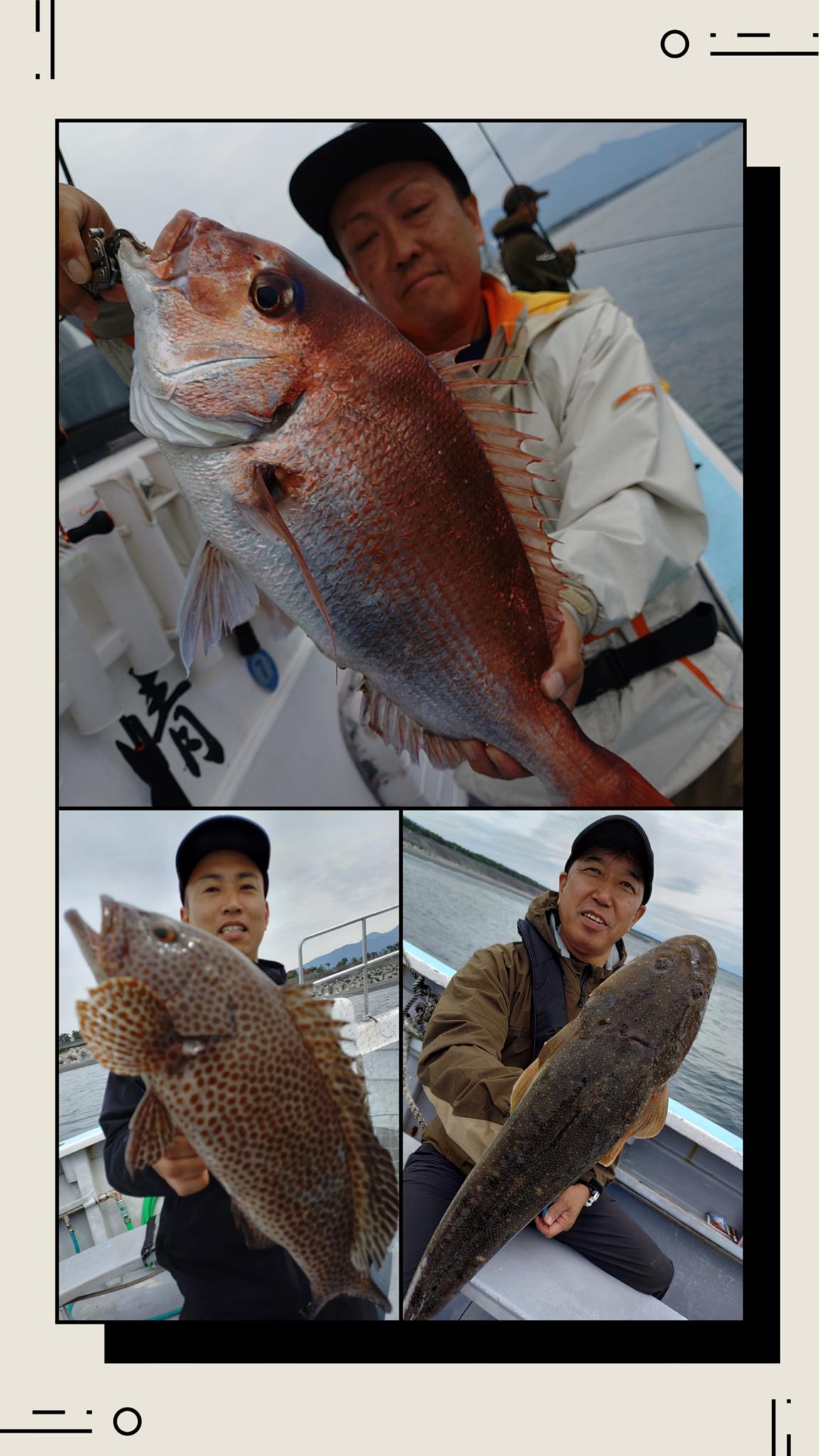 ☆本日は開始よりタイラバ&ジギングでマダイ2.5キロ・ハタ25~40センチ・マゴチ55センチ・カサゴ・鯵20~35センチをキャッチしてます。その他良型のバラシ何度か有ります。
