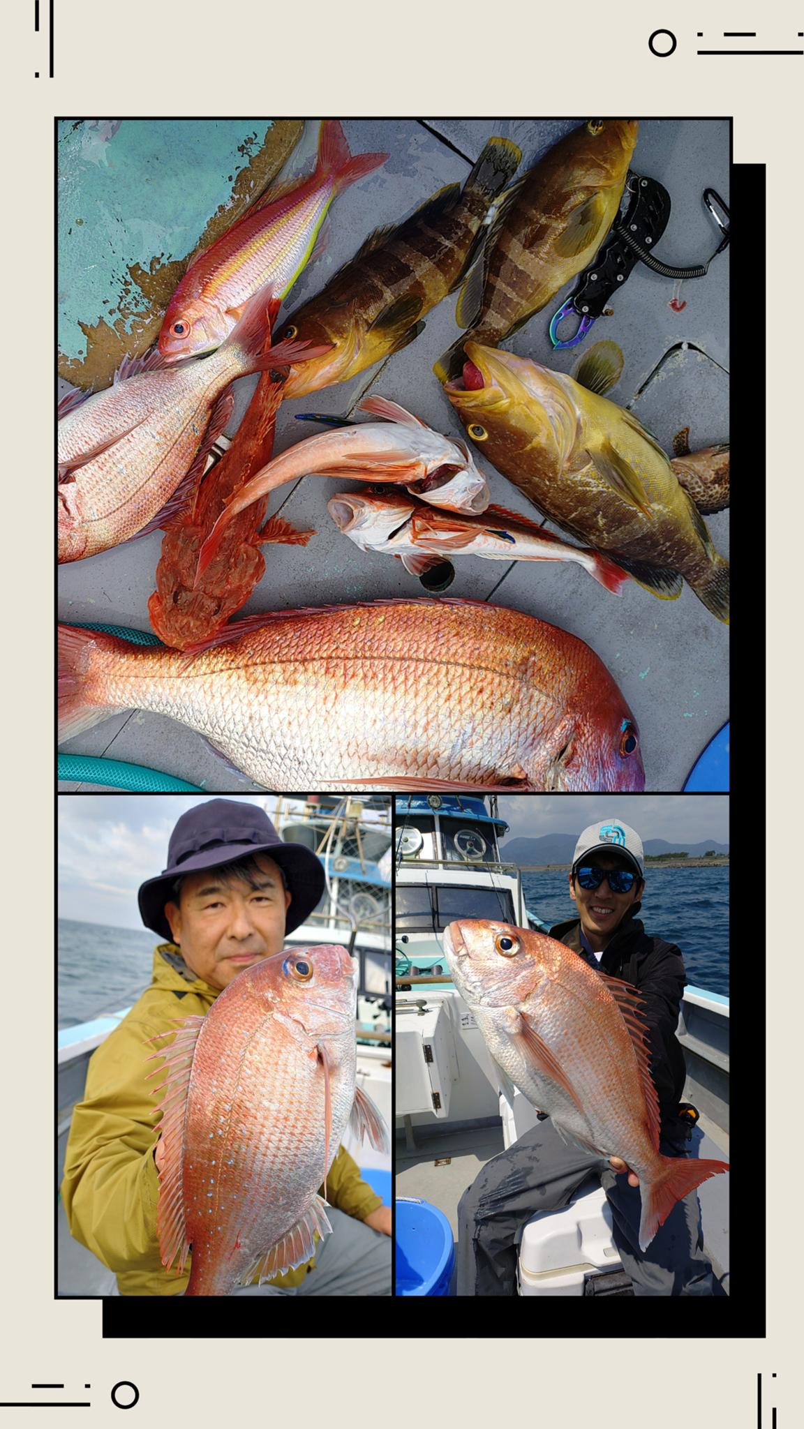 ☆本日は開始よりマダイの35~65センチ・ニベ30~60センチ・メジナ・鯵・ホウボウ・ハタが連発してます。その他良型のバラシ有ります。連休のお客様を募集中。