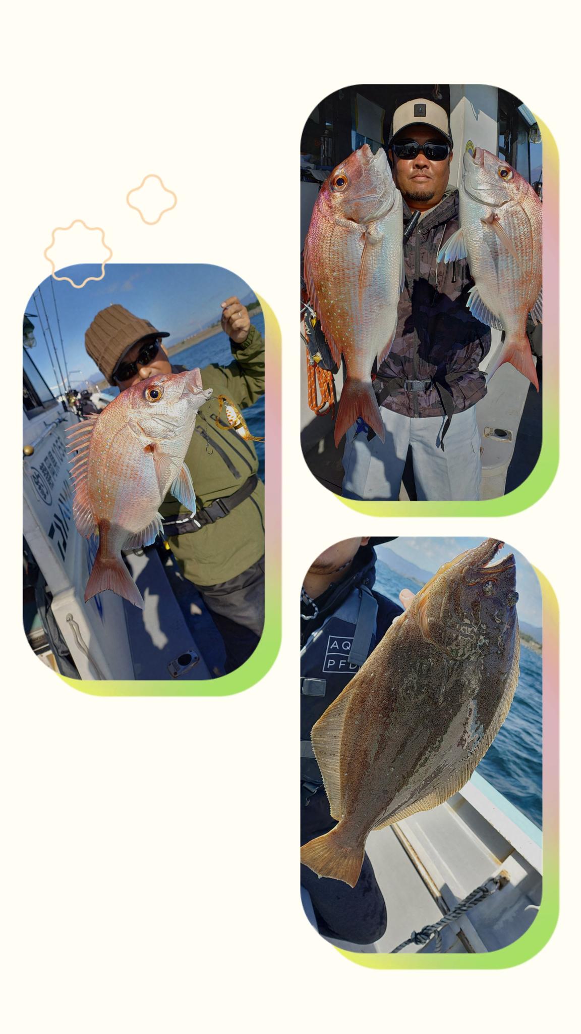 ☆マダイ・鯵開始よりヒット・ニベ・ヒラメ45~75センチ・オオモンハタ・カイワリ・シロ甘鯛をキャッチしてます。青物のヒット有りました。