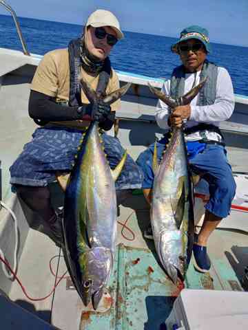 ✩日曜日はキハダの26~27キロをキャッチ。キメジ頭で2匹その他オキザワラ・シイラ・ショゴをキャッチしてます。カツオの跳ねは最後には最高の状態になりました。挑戦者募集中です。