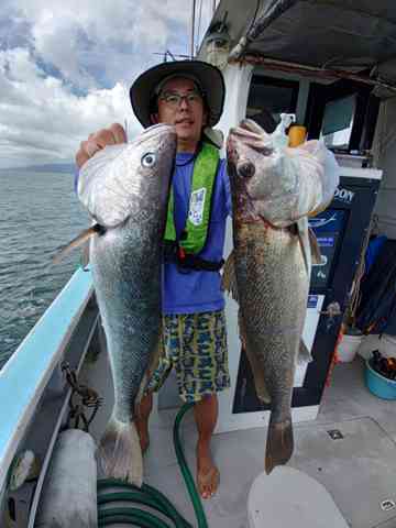 本日はカツオの1.5~6.0キロクラス。キメジの2~3キロクラスがヒットしてます。その他バラシ有ります。キハダのチャンス有りました。挑戦者募集中です。