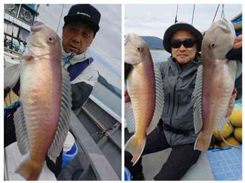 ☆本日もマダイ頭で4枚 全員キャッチしてます。その他 シロ甘鯛・アカ甘鯛・ハタ・ホウボウ・イトヨリ。本命のバラシ有ります。