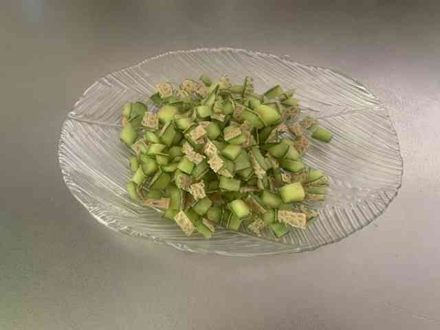 メロンの皮、2分の1個分です。賽の目に切りましたが、もっと大きくてよかったかも。