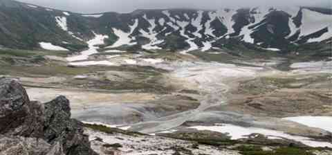 黒岳7合目から頂上へと登る。出発いきなりの急騰はきつかった。黒岳石室から雲ノ平を通って中岳、間宮岳、荒井岳、北海岳とお鉢平を左にずっと見ながら歩く。昨年群生していたチングルマは見れず、残念だったが、でっかいお鉢平の景観に圧倒されながら歩いた。北海岳分岐から白雲岳方面に。足があがらずよれよれ。白雲岳に登る元気はない。白雲岳避難小屋にとにかく15時前。