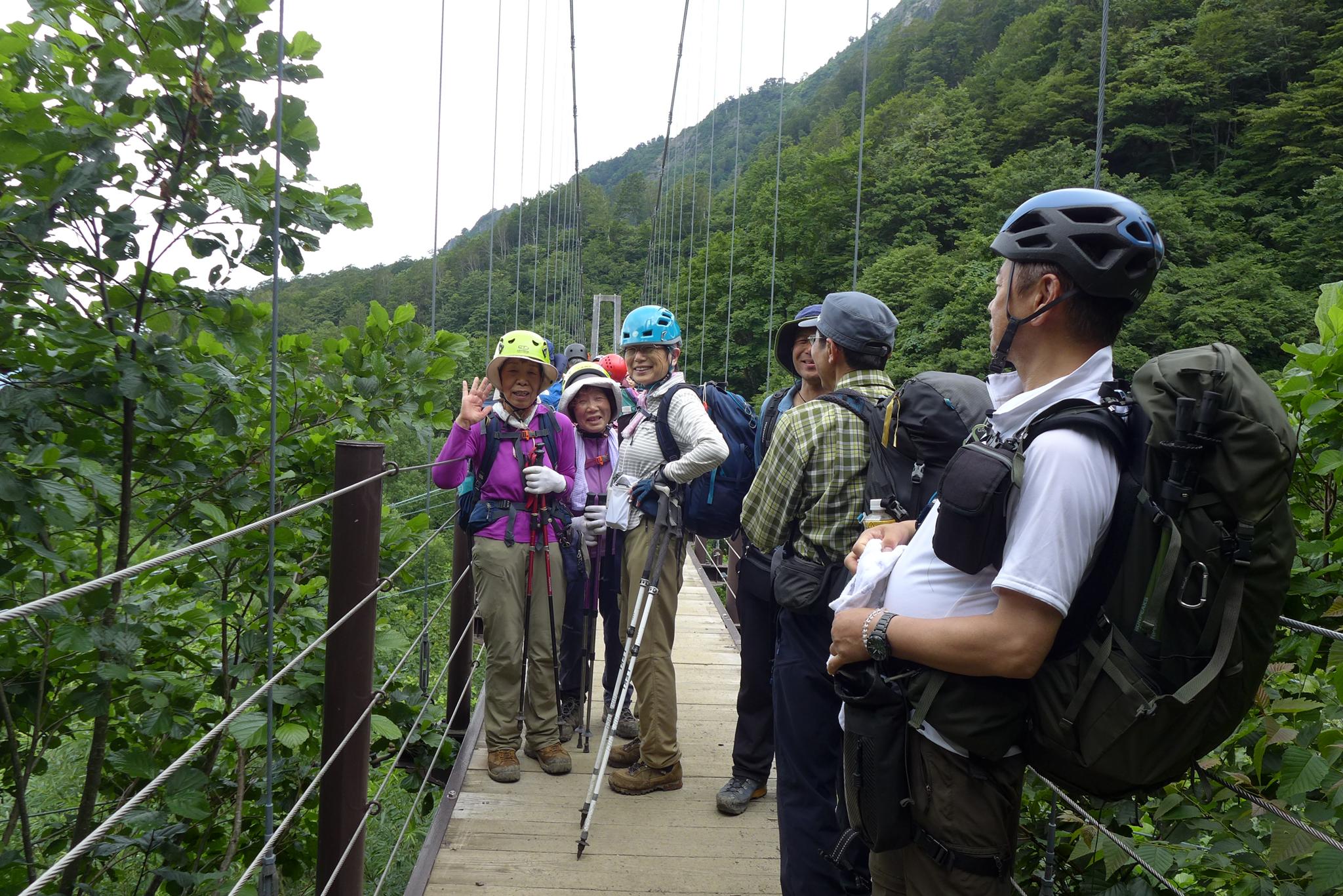 別当出合のつり橋で御前峰N組と合流する。