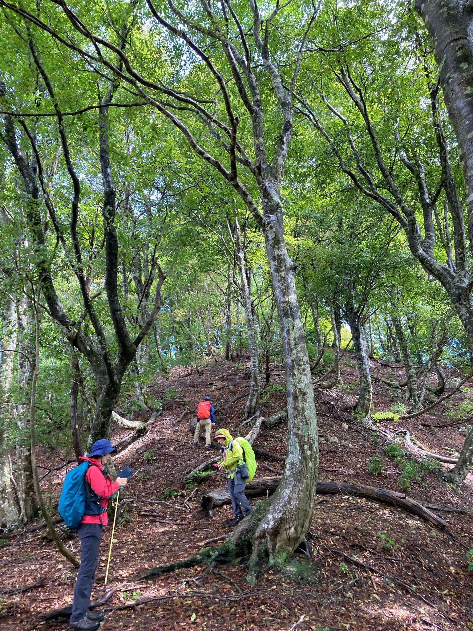 百里新道から登って 高島トレイルの一部分を歩く山道は、終始 ブナ林に包まれる空間でした。