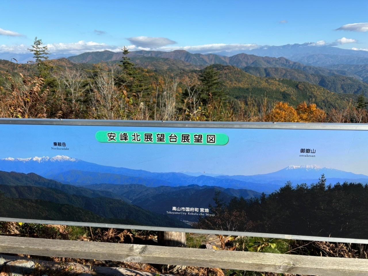 山頂からは古川盆地が見えここは雲海で有名な所反対側からは乗鞍岳 御嶽山が見られた