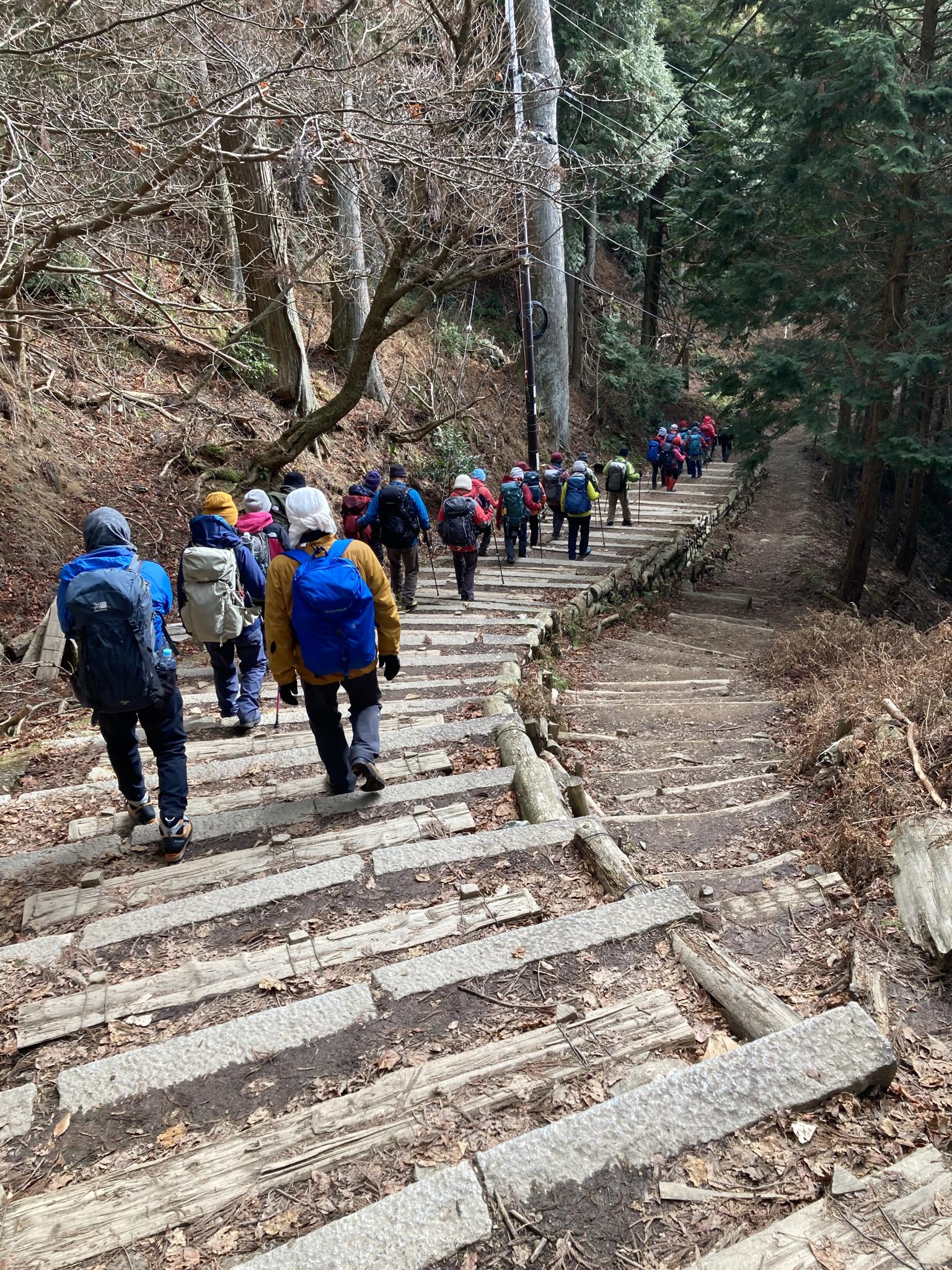 清滝登山口から下はツツジ尾根筋ぜんざい山行は大成功沢山の参加者があり賑やかな山行上りは暑くて汗をかくが山頂では寒かった楽しい1日を過ごしてきました 反省会もありました