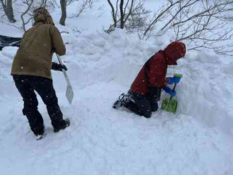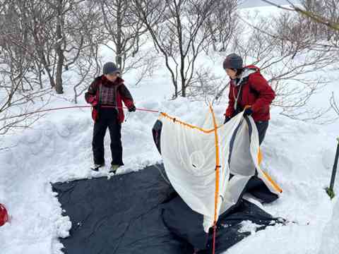 男組テント場は雪ブロックの防風壁