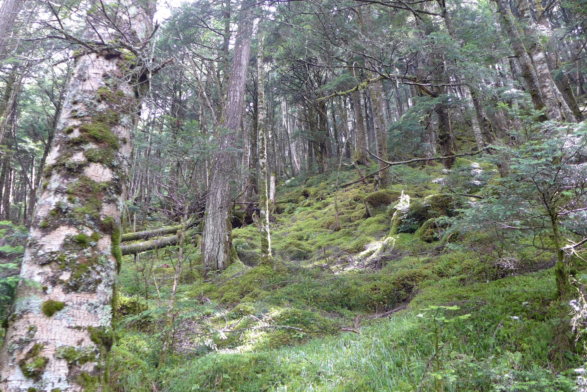 苔とシラビソがコラボレーションする林を歩きます。