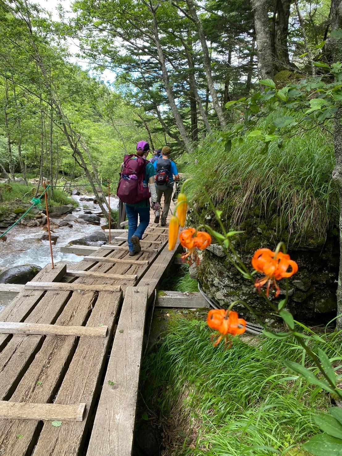 > 【1日目】美濃戸口から赤岳鉱泉までハイク。昼からは暑く、夕立にもあいましたが、美しい景色を楽しみました。
