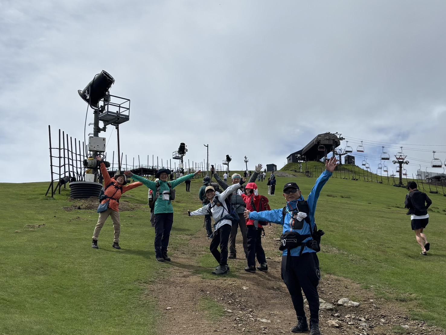 スキーで滑るゲレンデを歩いて登りました。