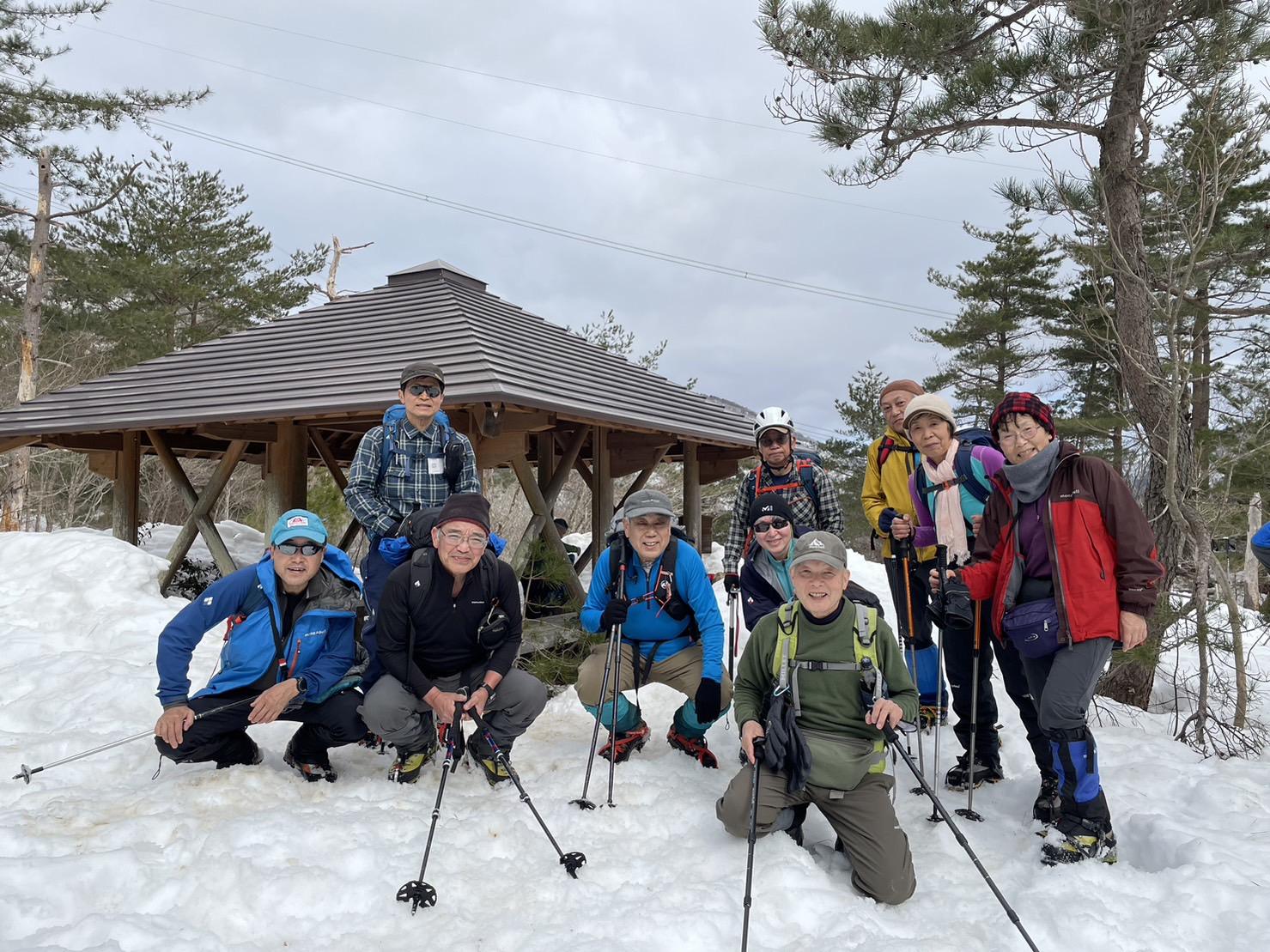 「もう一回一緒に行かへんか!」のことばにちょっと心は動きましたが、早く仕上げのビールを飲みたい人もいて、テント撤収して下山することに!皆で記念写真撮れてラッキーでした!