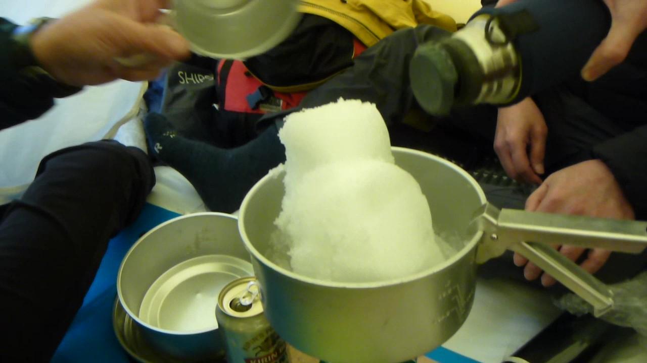 夕飯はカレーラーメン鍋です。雪を溶かして水をつくって、アベノマスクでゴミを越して使います。やっと役に立ったな!