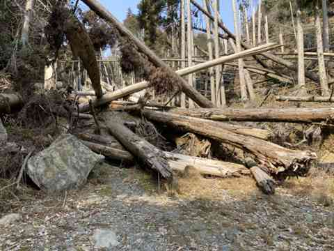 倒木に頭をぶっけて谷川に転げ落ちた。