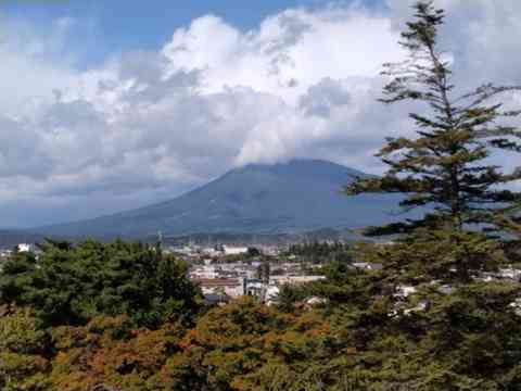 最終日、弘前城から見た岩木山。「津軽富士」の愛称で親しまれる美しい山容にうっとり。