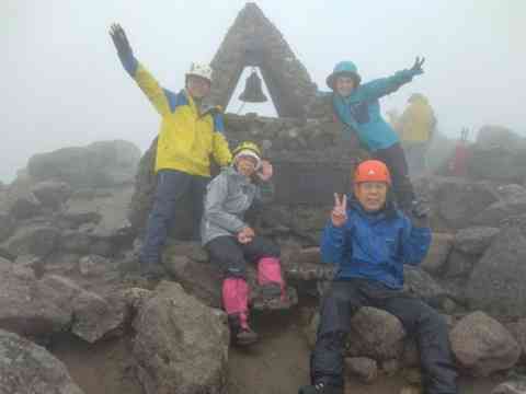 岩木山山頂のモニュメント。風雨がきついのでこの後避難小屋で休息。