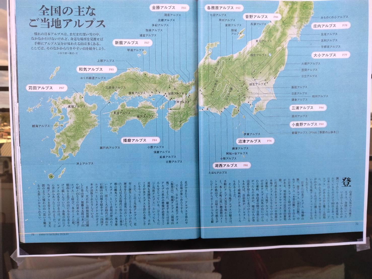 日本全国に60以上のご当地アルプスがあるそうです。日本全国のご当地アルプス(ヤマケイより)。