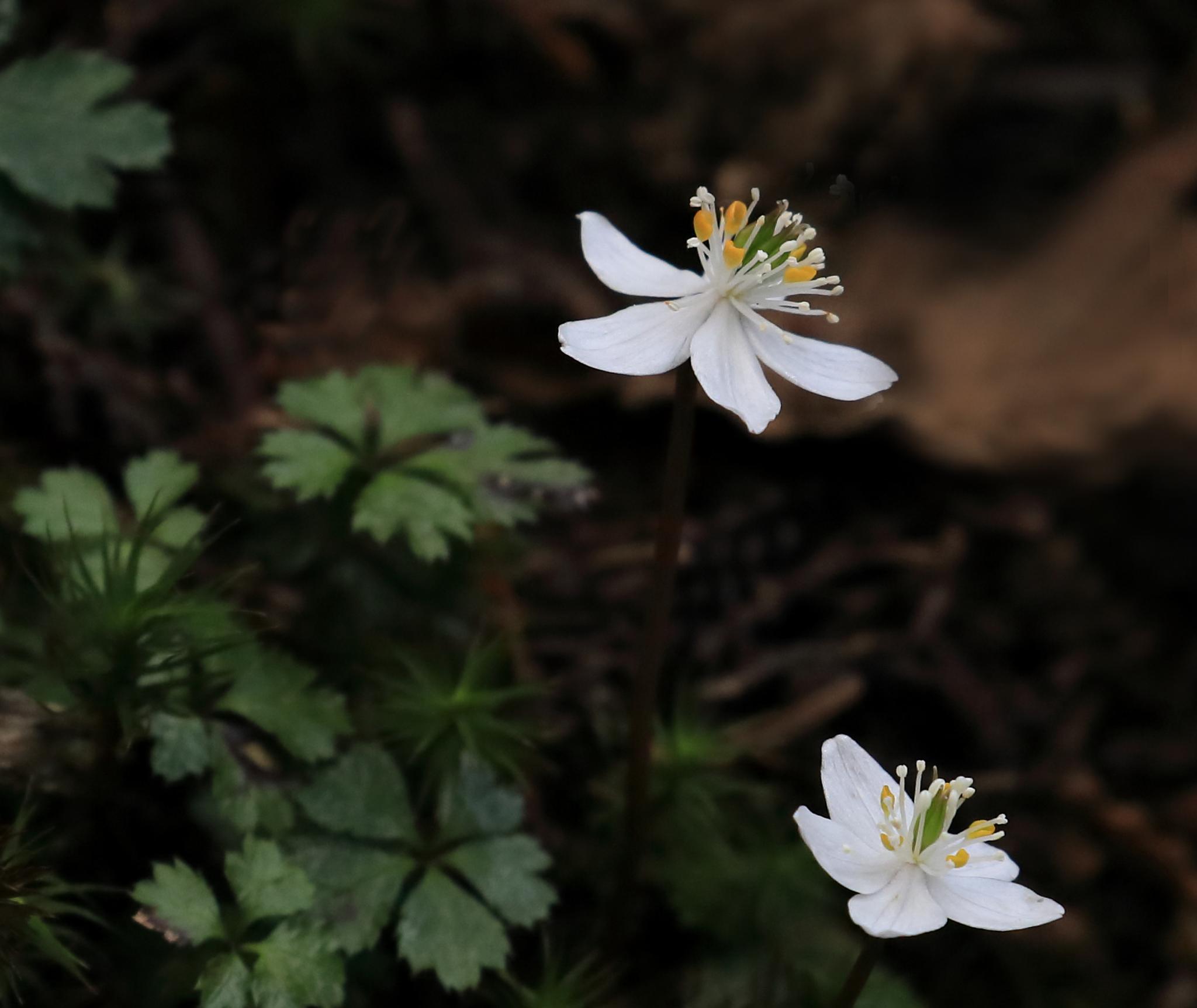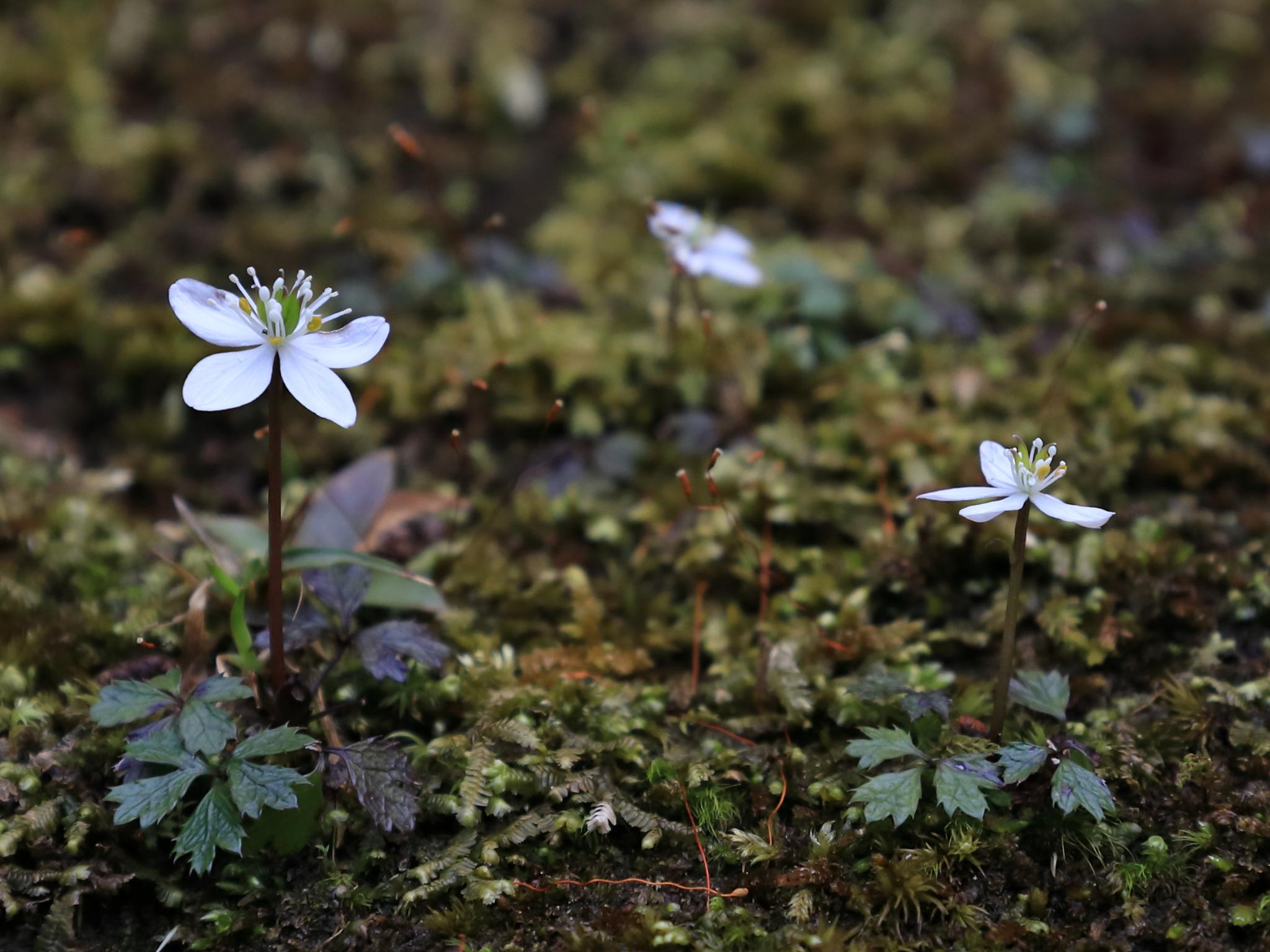 NHK朝ドラ「らんまん」でおなじみの花「バイカオウレン」です奥比叡の境内に咲いていました