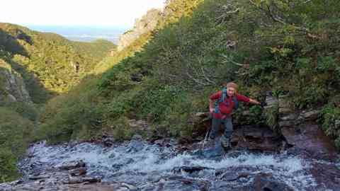 斜里岳旧道コースはいくつもの渡渉と滝を巻きます